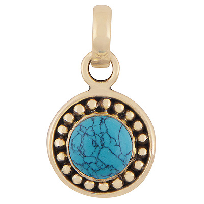 Home | Fashion Pendants | Brass Gemstone Pendants | Beautifully Handcrafted Rawa Work Around Turquoise Round Shape Solid Brass Pendants