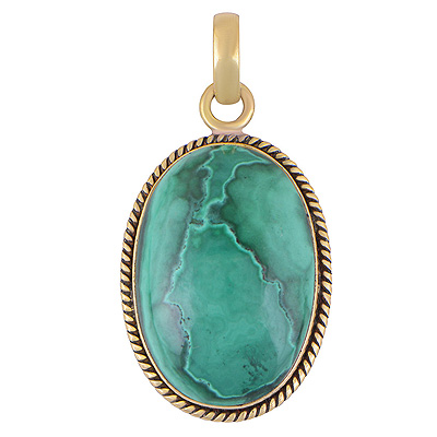 Beautiful Wire Work Around Malachite Oval Shape Solid Brass Pendant