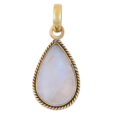 Home | Fashion Pendants | Brass Gemstone Pendants | Beautiful Wire Work Around Rainbow Moonstone Pear Shape Solid Brass Pendant