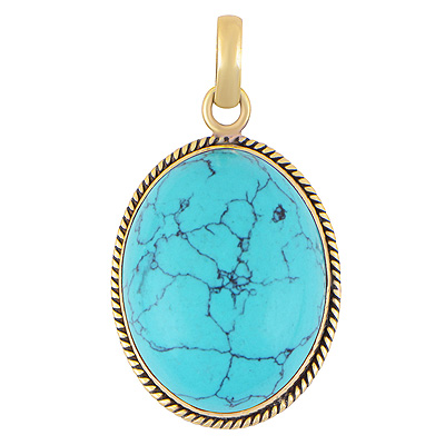 Home | Fashion Pendants | Brass Gemstone Pendants | Beautiful Wire Work Around Turquoise Oval Shape Solid Brass Pendant