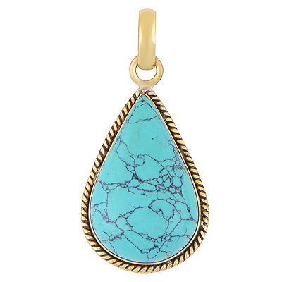 Beautiful Wire Work Around Turquoise Pear Shape Solid Brass Pendant