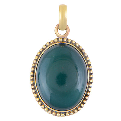 Home | Fashion Pendants | Brass Gemstone Pendants | Alluring Rawa Work Around Green Onyx Oval Shape Solid Brass Pendant