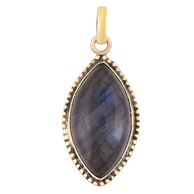 Home | Fashion Pendants | Brass Gemstone Pendants | Alluring Rawa Work Around Labradorite Marquise Shape Solid Brass Pendant