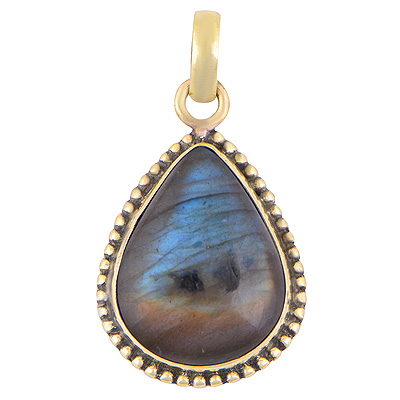 Home | Fashion Pendants | Brass Gemstone Pendants | Alluring Rawa Work Around Labradorite Pear Shape Solid Brass Pendant