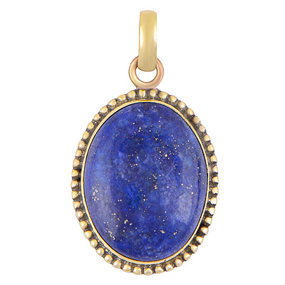 Home | Fashion Pendants | Brass Gemstone Pendants | Alluring Rawa Work Around Lapis Oval Shape Solid Brass Pendant