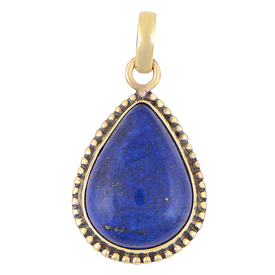 Home | Fashion Pendants | Brass Gemstone Pendants | Alluring Rawa Work Around Lapis Pear Shape Solid Brass Pendant