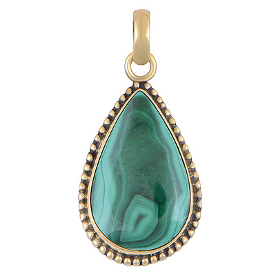 Home | Fashion Pendants | Brass Gemstone Pendants | Alluring Rawa Work Around Malachite Pear Shape Solid Brass Pendant