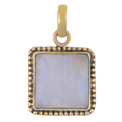 Home | Fashion Pendants | Brass Gemstone Pendants | Alluring Rawa Work Around Rainbow Moonstone Square Shape Solid Brass Pendant