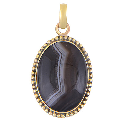 Home | Fashion Pendants | Brass Gemstone Pendants | Alluring Rawa Work Around Striped Onyx Oval Shape Solid Brass Pendant