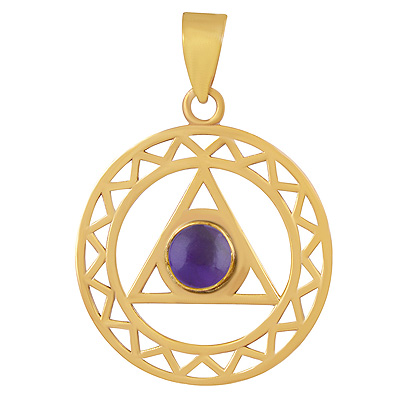 Home | Fashion Pendants | Brass Gemstone Pendants | Stunning Design Pattern Around Amethyst Round Shape Solid Brass Pendants