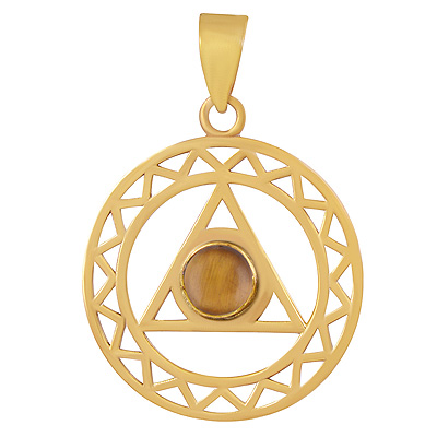 Home | Fashion Pendants | Brass Gemstone Pendants | Stunning Design Pattern Around Tiger's Eye Round Shape Solid Brass Pendants