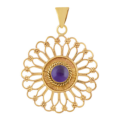 Home | Fashion Pendants | Brass Gemstone Pendants | Alluring Flower Pattern Around Amethyst Round Shape Solid Brass Pendants