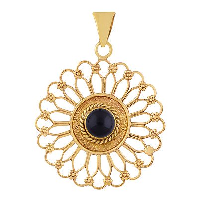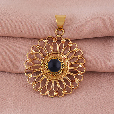 Home | Fashion Pendants | Brass Gemstone Pendants | Alluring Flower Pattern Around Black Onyx Round Shape Solid Brass Pendants
