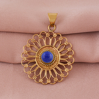 Home | Fashion Pendants | Brass Gemstone Pendants | Alluring Flower Pattern Around Lapis Round Shape Solid Brass Pendants