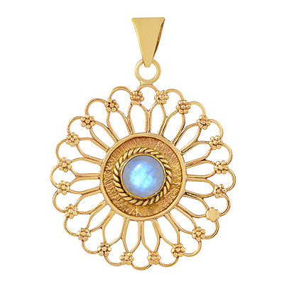 Home | Fashion Pendants | Brass Gemstone Pendants | Alluring Flower Pattern Around Rainbow Moonstone Round Shape Solid Brass Pendants