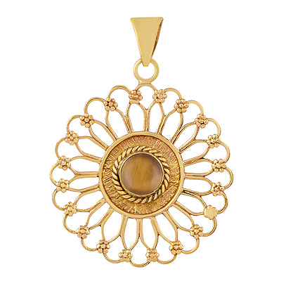 Home | Fashion Pendants | Brass Gemstone Pendants | Alluring Flower Pattern Around Tiger's Eye Round Shape Solid Brass Pendants