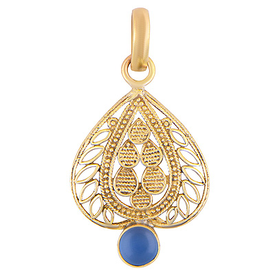 Home | Fashion Pendants | Brass Gemstone Pendants | Alluring Rawa Pattern Around Blue Chalcedony Round Shape Solid Brass Pendants