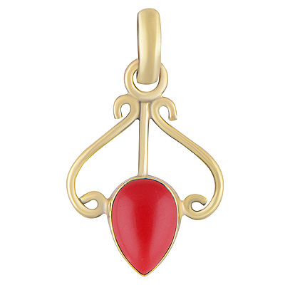 Home | Fashion Pendants | Brass Gemstone Pendants | Gorgeous Handcrafted Wire Work Around Coral Pear Shape Solid Brass Pendants