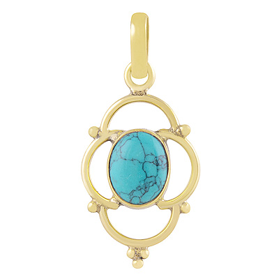 Home | Fashion Pendants | Brass Gemstone Pendants | Stunning Flower Around Turquoise Oval Shape Solid Brass Pendants