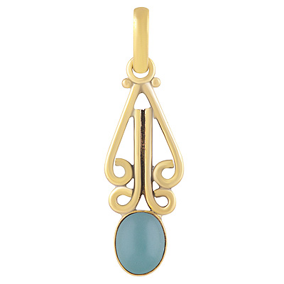 Home | Fashion Pendants | Brass Gemstone Pendants | Gorgeous Handcrafted Wire Work Around Aqua Chalcedony Oval Shape Solid Brass Pendants