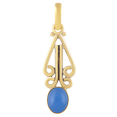 Home | Fashion Pendants | Brass Gemstone Pendants | Gorgeous Handcrafted Wire Work Around Blue Chalcedony Oval Shape Solid Brass Pendants