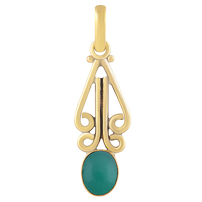 Home | Fashion Pendants | Brass Gemstone Pendants | Gorgeous Handcrafted Wire Work Around Green Onyx Oval Shape Solid Brass Pendants