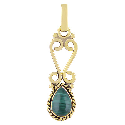 Home | Fashion Pendants | Brass Gemstone Pendants | Stunning Twisted Wire Work Around Malachite Pear Shape Solid Brass Pendants