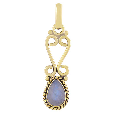 Home | Fashion Pendants | Brass Gemstone Pendants | Stunning Twisted Wire Work Around Rainbow Moonstone Pear Shape Solid Brass Pendants