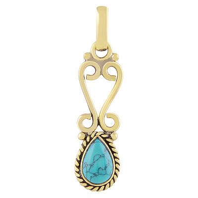 Home | Fashion Pendants | Brass Gemstone Pendants | Stunning Twisted Wire Work Around Turquoise Pear Shape Solid Brass Pendants