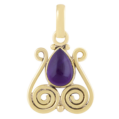 Home | Fashion Pendants | Brass Gemstone Pendants | Beautiful Coil Work Around Amethyst Pear Shape Solid Brass Pendants