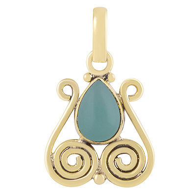 Home | Fashion Pendants | Brass Gemstone Pendants | Beautiful Coil Work Around Aqua Chalcedony Pear Shape Solid Brass Pendants