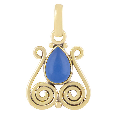 Home | Fashion Pendants | Brass Gemstone Pendants | Beautiful Coil Work Around Blue Chalcedony Pear Shape Solid Brass Pendants