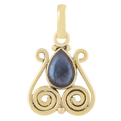 Home | Fashion Pendants | Brass Gemstone Pendants | Beautiful Coil Work Around Labradorite Pear Shape Solid Brass Pendants