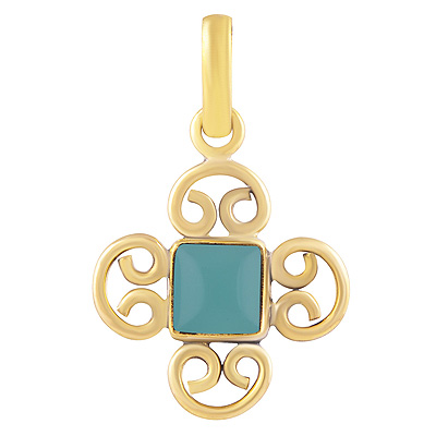 Home | Fashion Pendants | Brass Gemstone Pendants | Alluring Pattern Around Aqua Chalcedony Square Shape Solid Brass Pendants