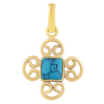Home | Fashion Pendants | Brass Gemstone Pendants | Alluring Pattern Around Turquoise Square Shape Solid Brass Pendants