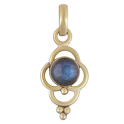 Home | Fashion Pendants | Brass Gemstone Pendants | Stunning Flower w/ Rawa Work Around Labradorite Round Shape Solid Brass Pendants