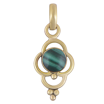 Home | Fashion Pendants | Brass Gemstone Pendants | Stunning Flower w/ Rawa Work Around Malachite Round Shape Solid Brass Pendants