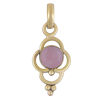 Home | Fashion Pendants | Brass Gemstone Pendants | Stunning Flower w/ Rawa Work Around Rose Quartz Round Shape Solid Brass Pendants