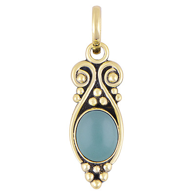 Home | Fashion Pendants | Brass Gemstone Pendants | Beautiful Handcrafted Work Around Aqua Chalcedony Oval Shape Solid Brass Pendants