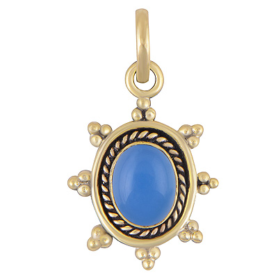 Home | Fashion Pendants | Brass Gemstone Pendants | Alluring Handcrafted Work Around Blue Chalcedony Oval Shape Solid Brass Pendants