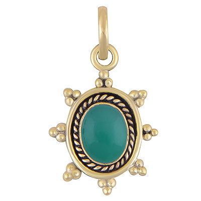Home | Fashion Pendants | Brass Gemstone Pendants | Alluring Handcrafted Work Around Green Onyx Oval Shape Solid Brass Pendants