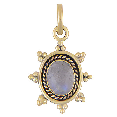 Home | Fashion Pendants | Brass Gemstone Pendants | Alluring Handcrafted Work Around Rainbow Moonstone Oval Shape Solid Brass Pendants