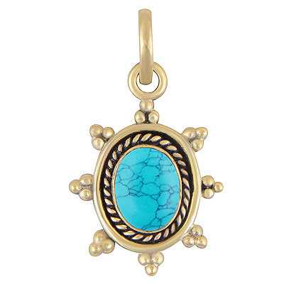 Home | Fashion Pendants | Brass Gemstone Pendants | Alluring Handcrafted Work Around Turquoise Oval Shape Solid Brass Pendants