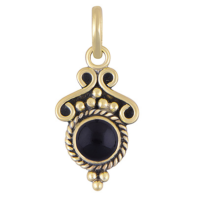 Home | Fashion Pendants | Brass Gemstone Pendants | Beautiful Rawa & Wire Work Around Black Onyx Round Shape Solid Brass Pendants
