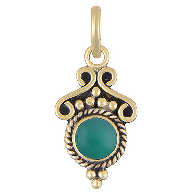 Home | Fashion Pendants | Brass Gemstone Pendants | Beautiful Rawa & Wire Work Around Green Onyx Round Shape Solid Brass Pendants