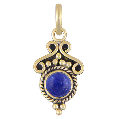 Home | Fashion Pendants | Brass Gemstone Pendants | Beautiful Rawa & Wire Work Around Lapis Round Shape Solid Brass Pendants