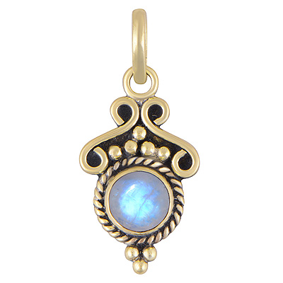 Home | Fashion Pendants | Brass Gemstone Pendants | Beautiful Rawa & Wire Work Around Rainbow Moonstone Round Shape Solid Brass Pendants
