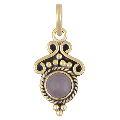 Home | Fashion Pendants | Brass Gemstone Pendants | Beautiful Rawa & Wire Work Around Rose Quartz Round Shape Solid Brass Pendants