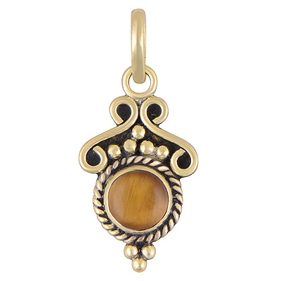 Home | Fashion Pendants | Brass Gemstone Pendants | Beautiful Rawa & Wire Work Around Tiger's Eye Round Shape Solid Brass Pendants