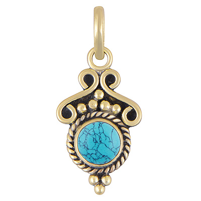 Home | Fashion Pendants | Brass Gemstone Pendants | Beautiful Rawa & Wire Work Around Turquoise Round Shape Solid Brass Pendants